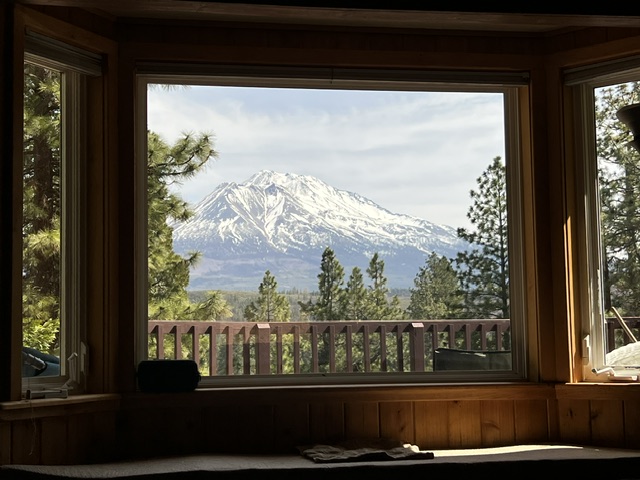 3 Bedrooms • 2 Bathrooms 2 Baths • Sleeps 1-6The views of Mt. Shasta are expansive and breathtaking, stretching across the surrounding landscape and changing beautifully with the light throughout the day. On the lower portion of the property, an irrigation ditch flows like a charming seasonal creek, typically running from spring through fall (and sometimes longer, depending on the water year). Its gentle sound adds to the tranquil atmosphere and makes spending time outdoors even more relaxing. S